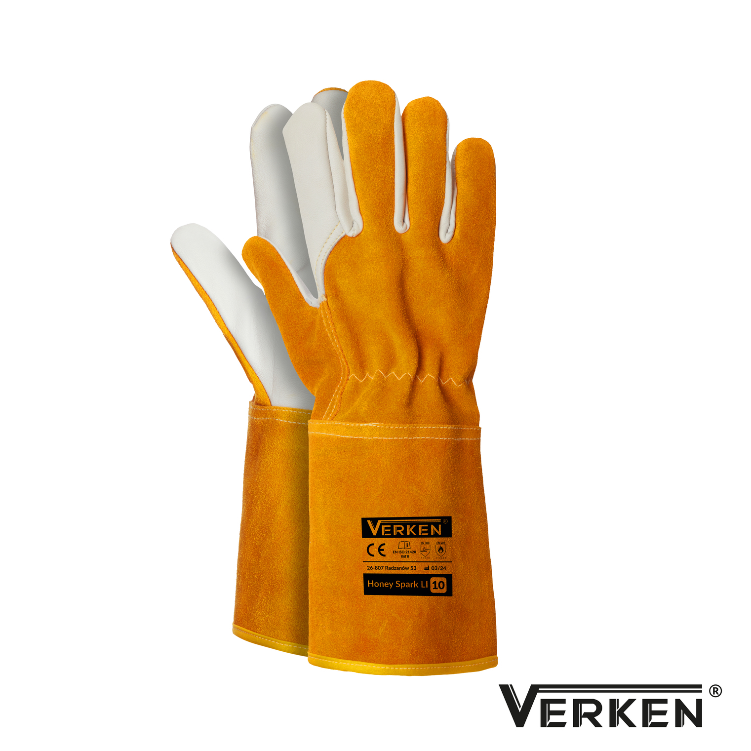 Rękawice ochronne VERKEN Honey Spark LI to wysokiej jakości rękawice spawalnicze wykonane z dwoiny bydlęcej oraz koziej skóry, zapewniające doskonałą ochronę i komfort użytkowania. Dzięki zastosowaniu nic kevlarowych rękawice cechują się zwiększoną odpornością na wysoką temperaturę oraz uszkodzenia mechaniczne.
